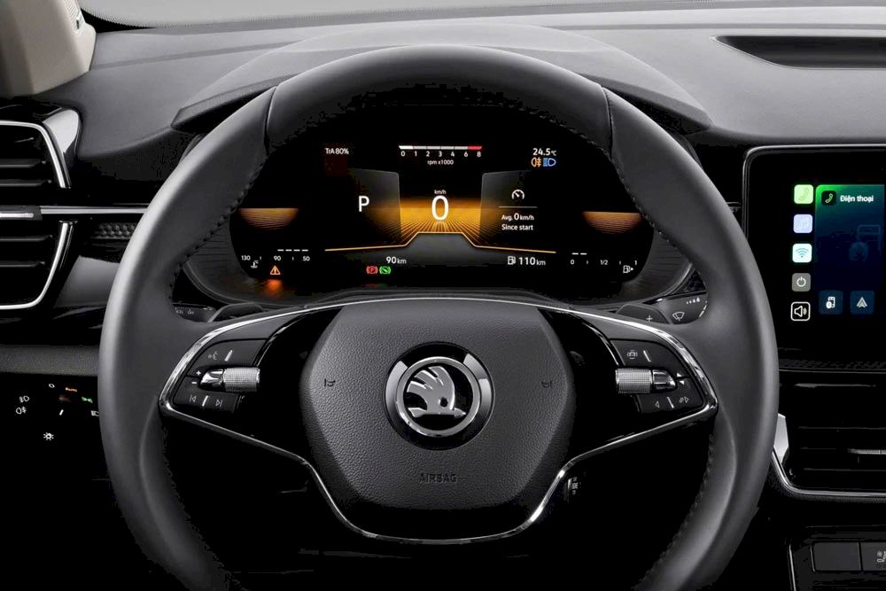 Vô lăng của Skoda Kushaq được thiết kế thể thao dạng D-CUT và tích hợp đầy đủ các tuỳ chỉnh giúp người lái vận hành thuận tiện và dễ dàng hơn.